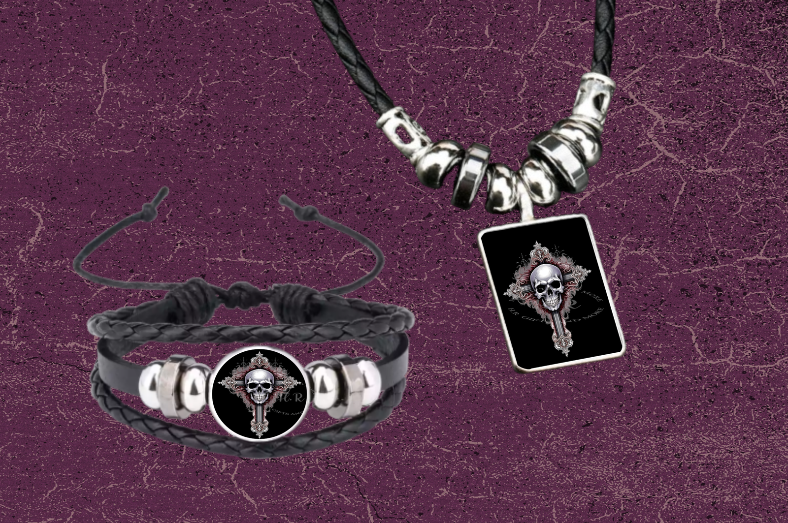 Be the first to review “Halloween Skull on Cross Necklace and Bracelet Set”