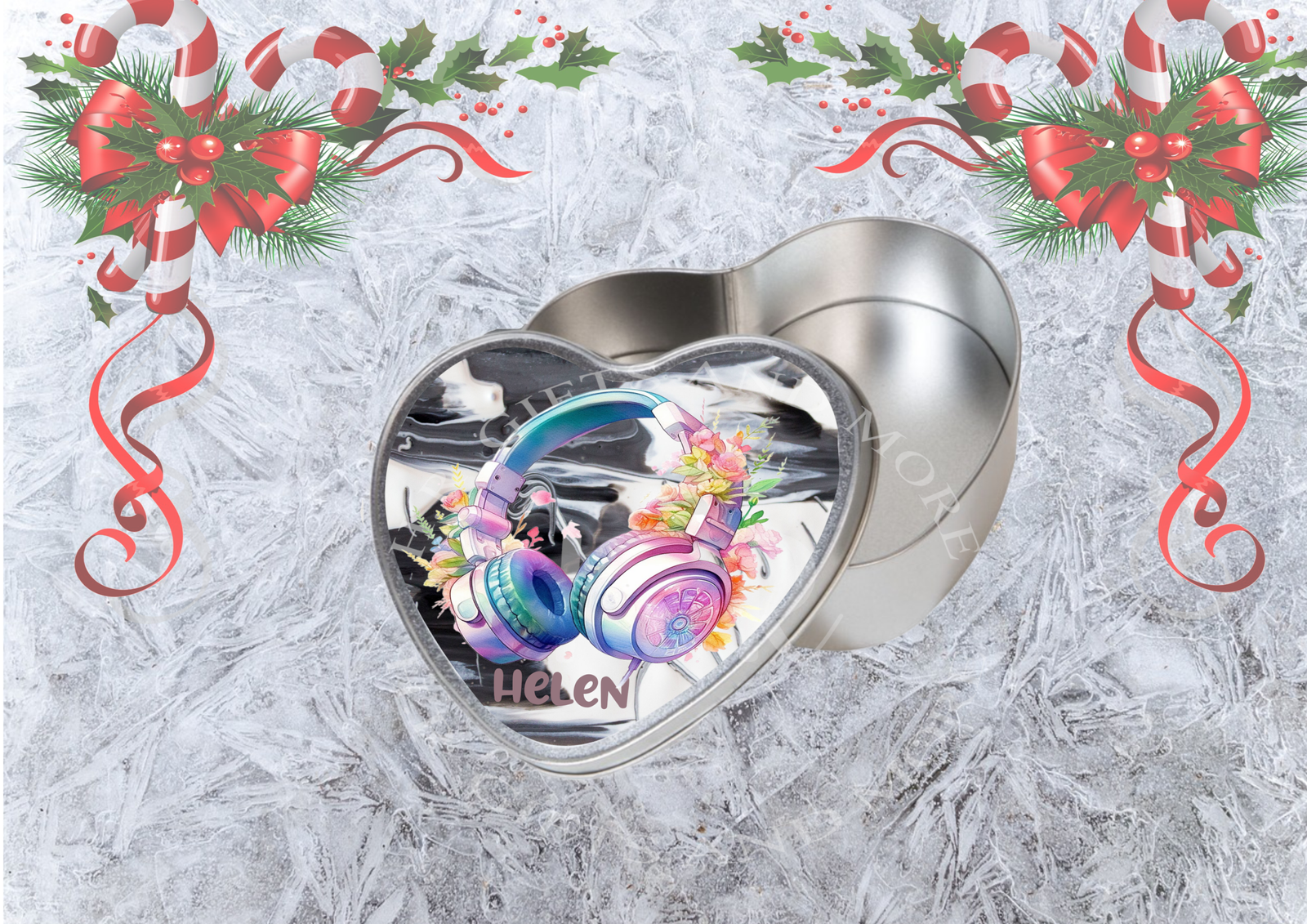 Personalised Christmas Gaming Headphones Treat Heart TinPersonalised Christmas Gaming Headphones Treat Heart Tin